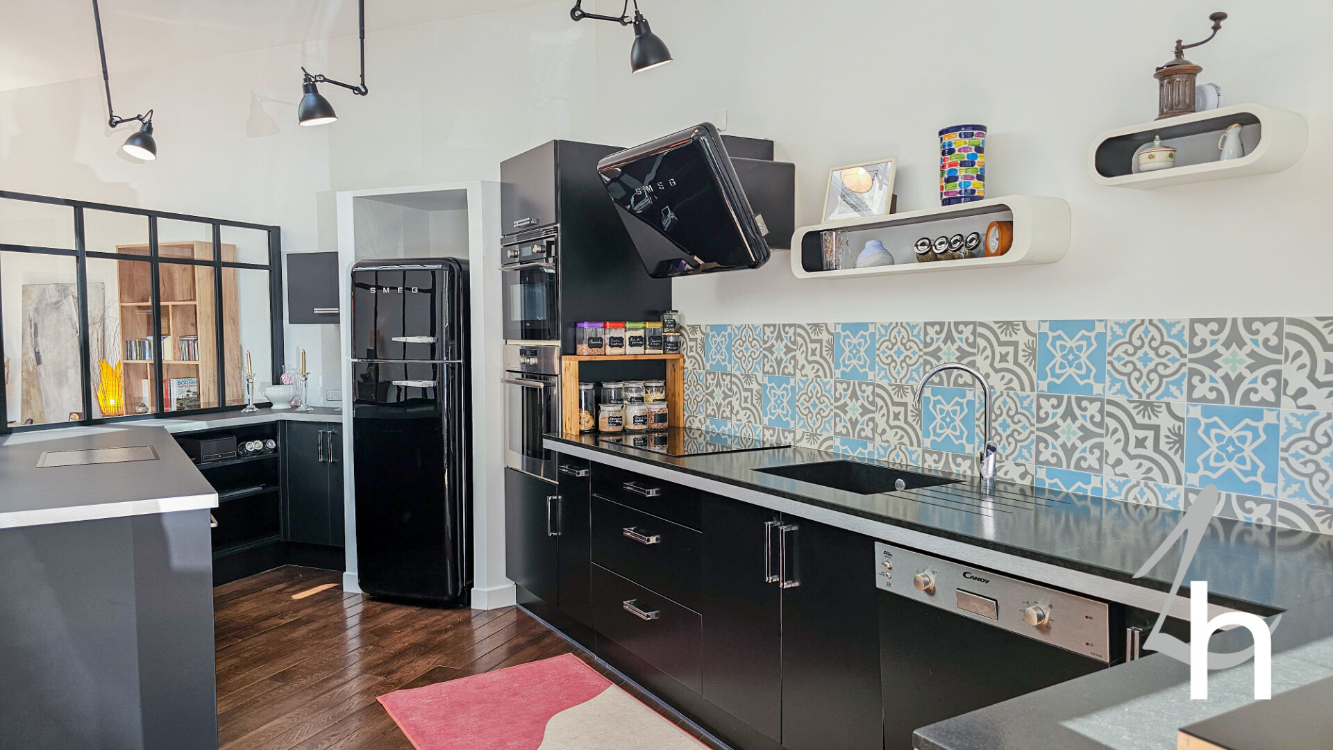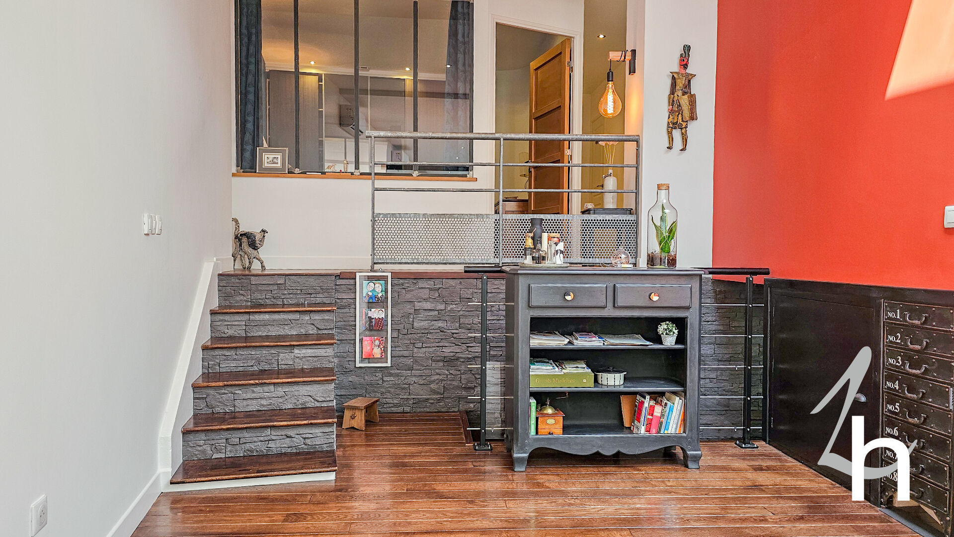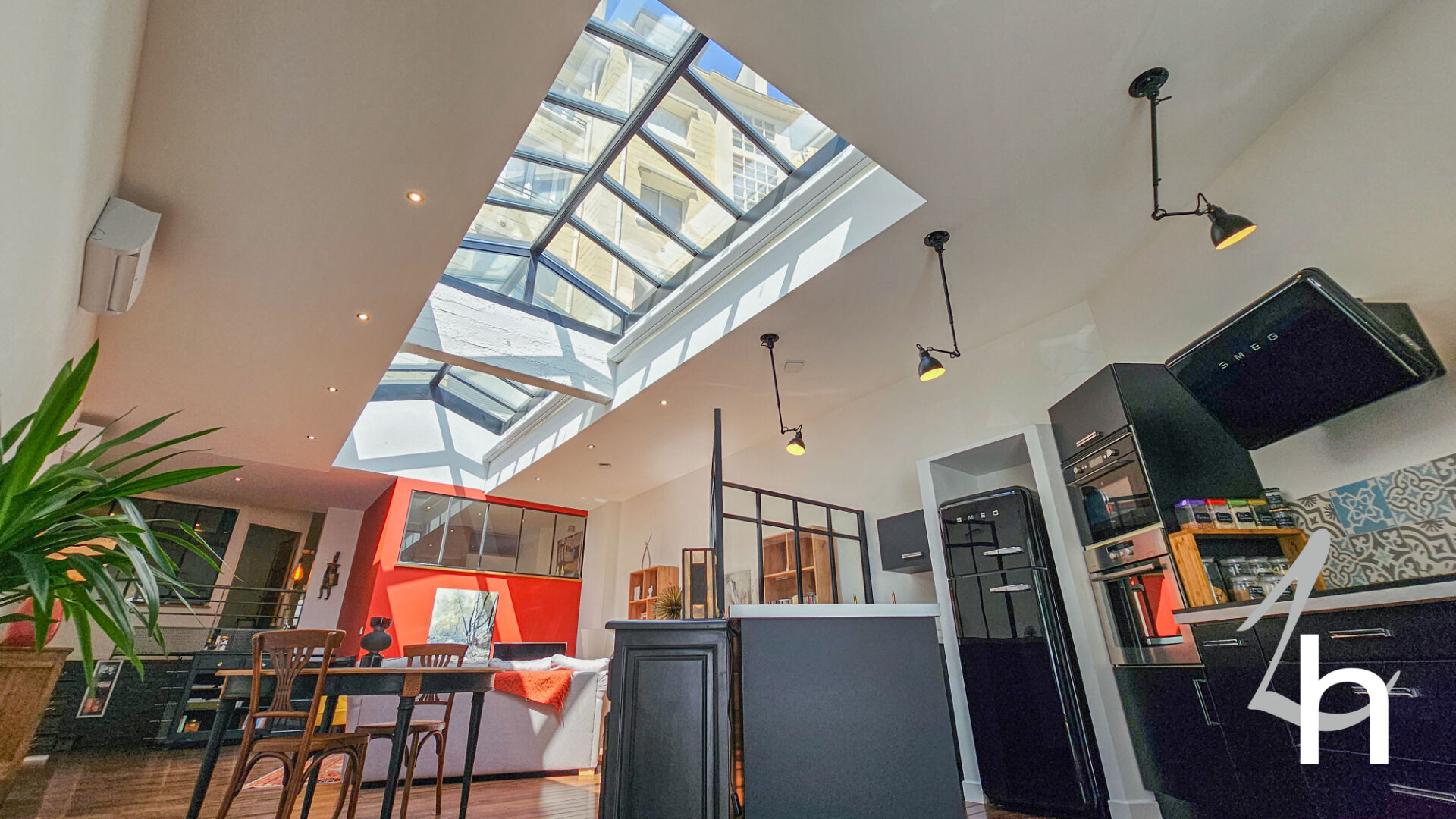 Vous serez séduit par les 2 verrières exposées plein SUD qui dominent une pièce à vivre de 66 m2 avec salon / salle à manger / cuisine aménagée et équipée / rangements.