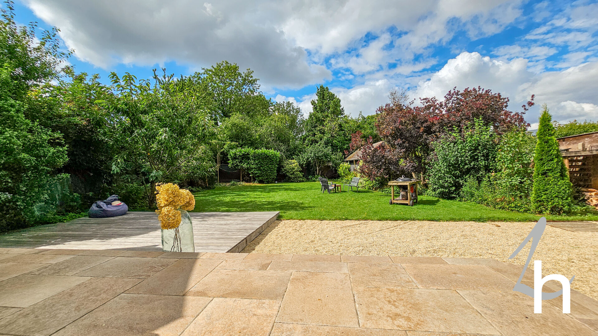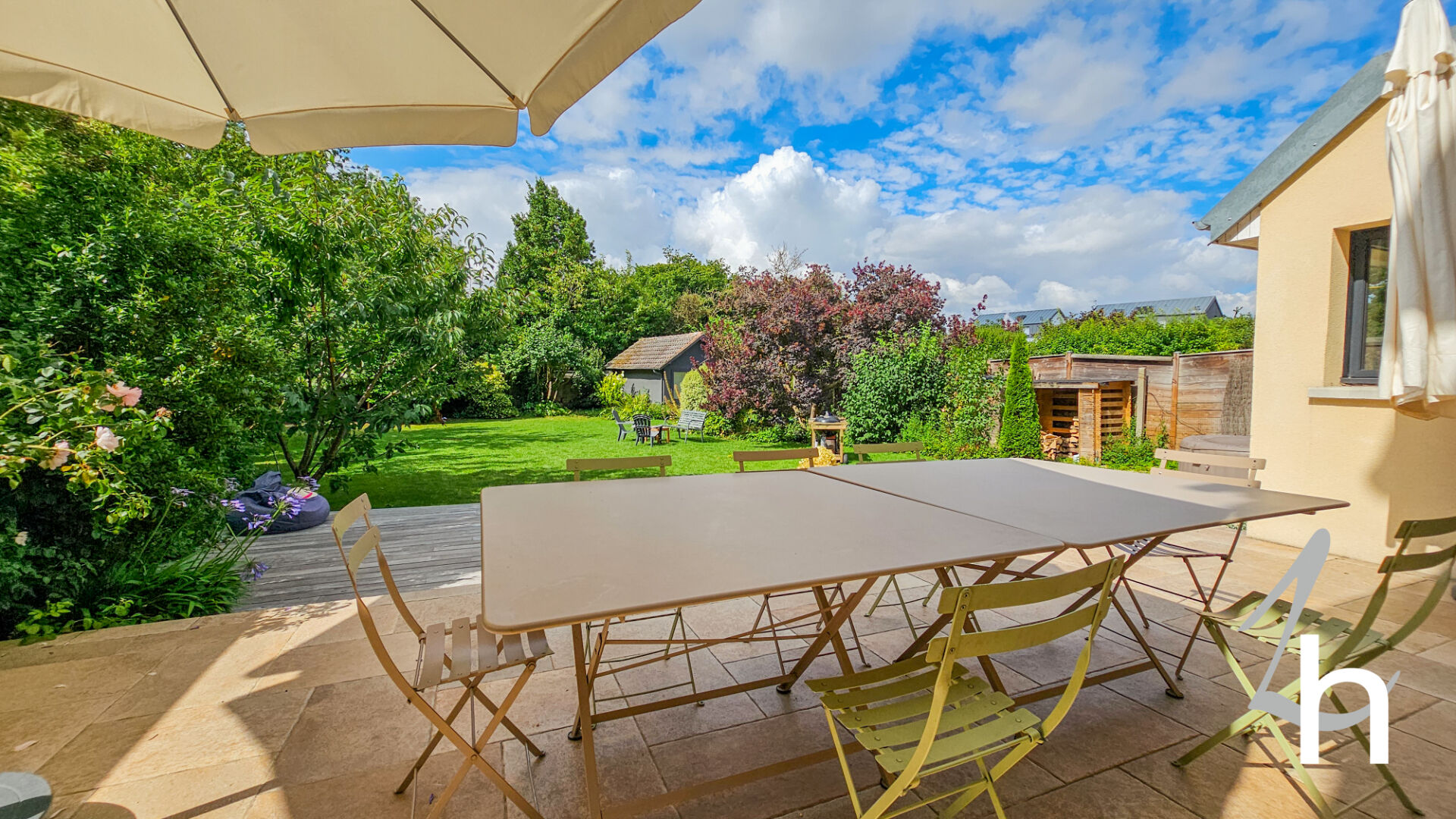 Vous serez séduit par son jardin clos et arboré offrant une belle terrasse de plus de 50 m2 exposée SUD / OUEST sans vis-à-vis.